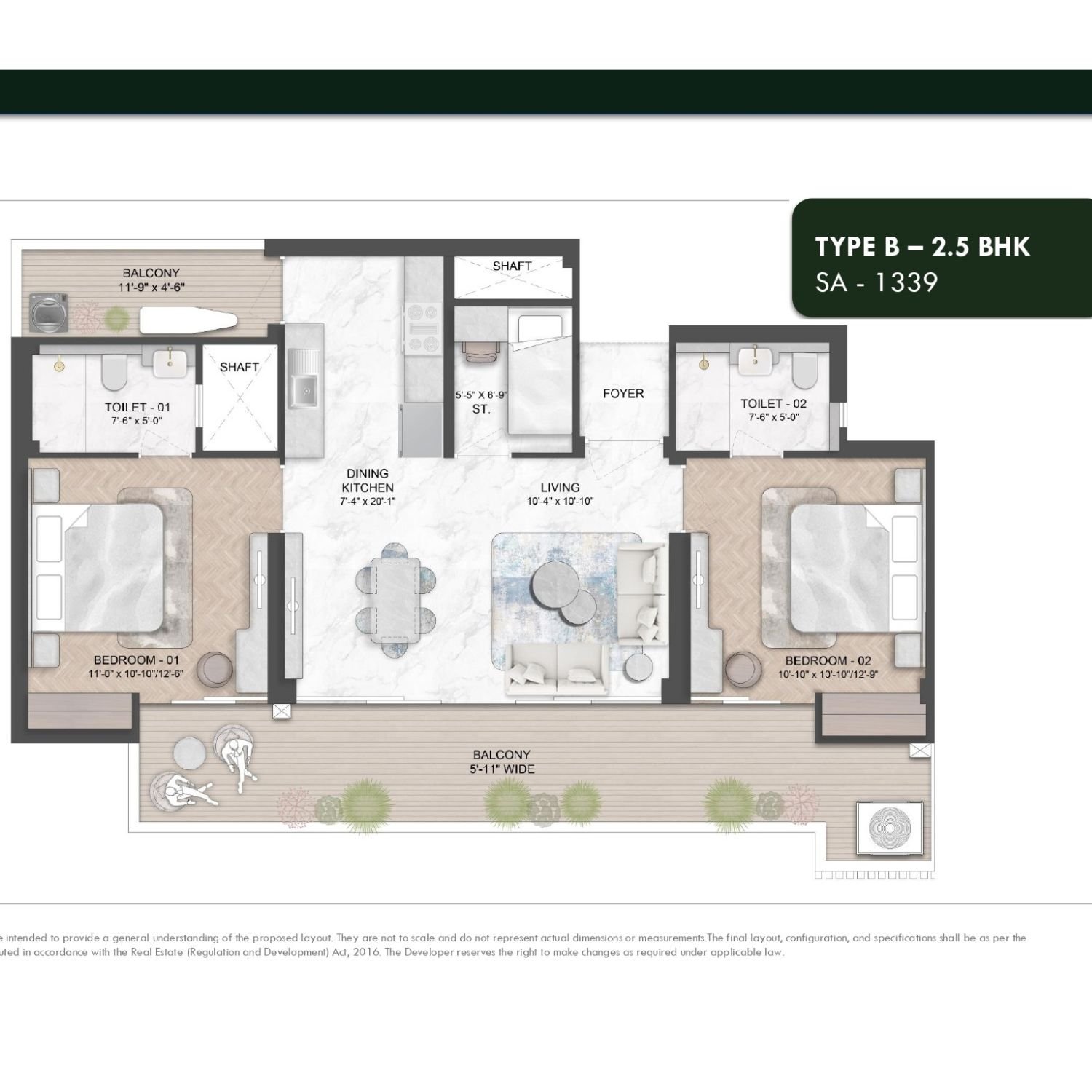 | 1339 to 1360 Sq.Ft. | 2.5 BHK | 1.70 Cr* Onwards |